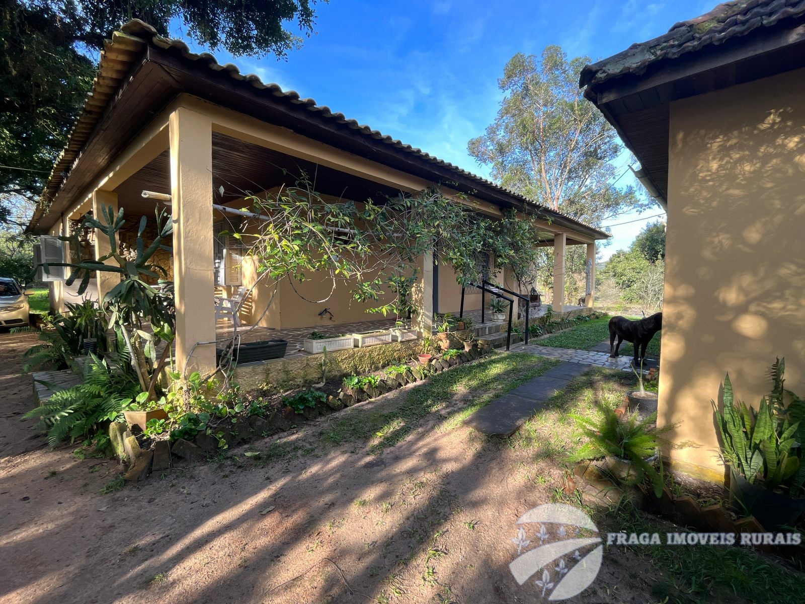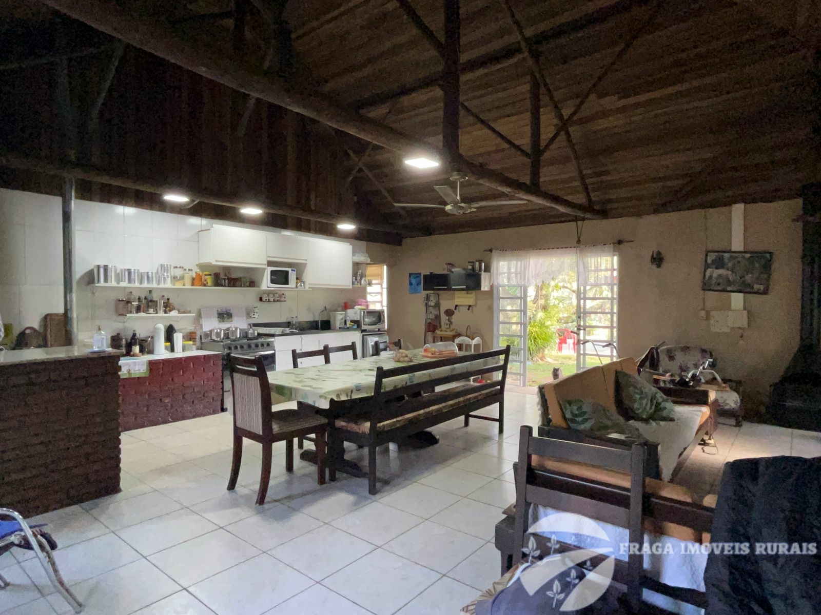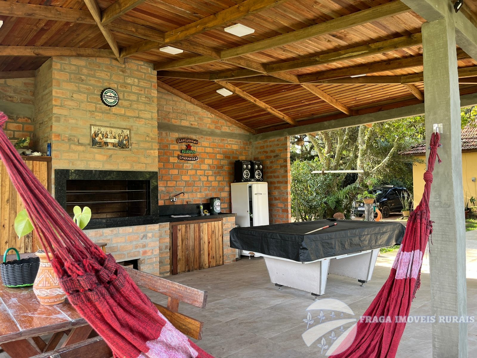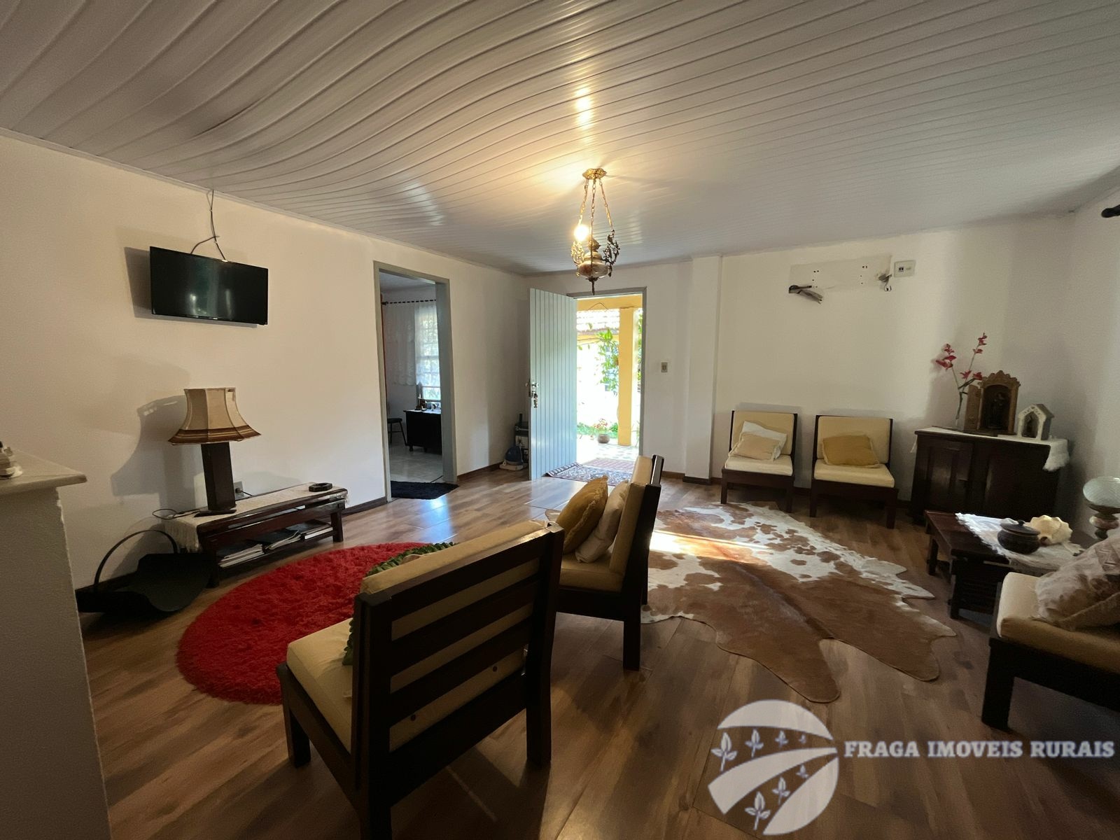 O sitio tem uma casa principal de 3 dormitorios, living amplo com lareira, cozinha grande e banheiro, um pequeno salão de festas com churrasqueira e lareira, banheiro, lavabo e 1 dormitório, com um estilo rustico e com um bom acabamento.