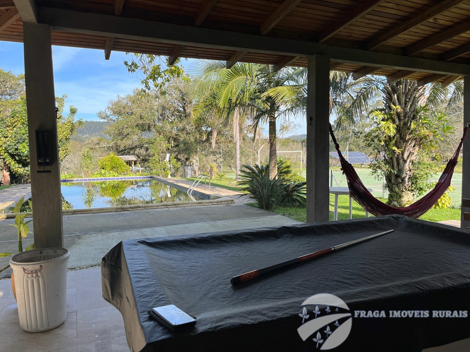 Com um quiosque com churrasqueira ao lado da piscina, para os momentos de socialização, com quadra de futebol, e playground para as crianças. um lugar bem arborizado, com algumas figueiras, trazendo uma conexão com a natureza , sem se privar da infraestrutura e do local de laser que este sitio proporciona.
